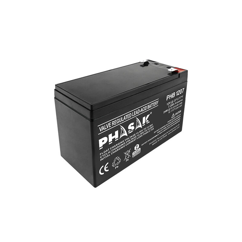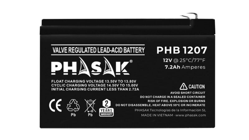 Batería sellada de plomo-ácido de 12V y capacidad de 7.2 Ah, compatibles con los modelos de SAI/UPS PHASAK, que incorporen baterías de las mismas características.