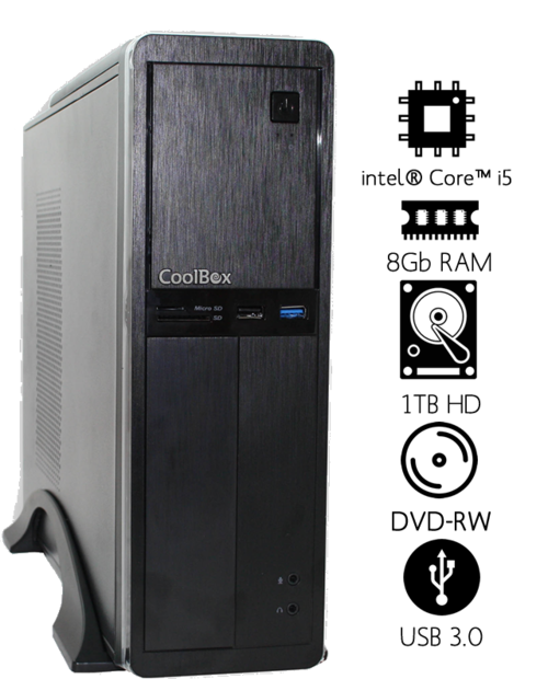 Compacta y elegante caja ATX para PC en formato SLIM y con frontal antracita, que permite su colocación tanto en horizontal como en vertical gracias a la estabilidad que le propociona su peana adicional. Además de tratarse de un PC convertible, dispone de una fuente CoolBox 300SBZ 85+ Certificado Eficiencia Energética, ventilador de 80mm y 2 puertos frontales USB 3.0.
