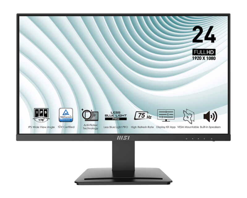 Monitor MSI PRO MP243X 23.8IPS FullHD 100Hz FreeSync Negro, 1 ms, 100 Hz, 1xHDMI, 1xDP/ VESA 75x75, MULTIMEDIA